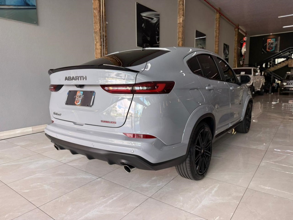 O Fiat Fastback Abarth 1.3 Turbo 270 AT 2026 traduz esportividade e exclusividade em um SUV com DNA de performance. Equipado com o motor 1.3 Turbo 270, entrega potência elevada, respostas rápidas e condução envolvente, aliado ao câmbio automático que garante trocas precisas e dinâmica eficiente. A versão Abarth se destaca pelo visual agressivo, acerto esportivo de suspensão e acabamento diferenciado, reforçando sua proposta ousada e marcante. Ideal para quem busca desempenho acima da média, tecnologia e um design que chama atenção por onde passa.Ano: 2026Quilometragem: 5.000 kmMotorização: 1.3 Turbo 270 Flex – 185 cv (etanol) / 180 cv (gasolina)Câmbio: Automático 6 marchasTração: DianteiraAirbag lateraisAirbag motoristaAirbag passageiroAlarmeAr-condicionado digitalAr quenteBanco do motorista com ajuste de alturaBancos de couroCâmera de réComputador de bordoControle de som no volanteControle de traçãoDesembaçador traseiroDireção elétricaEncosto de cabeça traseiroEntrada USBFreios ABSGPSMultimídia touchscreenPára-choques na cor do veículoPiloto automáticoRetrovisor fotocrômicoRetrovisores elétricosRodas de liga leve aro 18Sensor de estacionamentoTeto solar elétricoTravas elétricasVidros elétricosVidros elétricos traseirosVolante com regulagem de alturaControle de estabilidade (ESC)Assistente de partida em rampaFaróis Full LEDLanternas em LEDChave presencial com partida por botãoPainel digitalModos de condução (Normal / Sport)Escape esportivo AbarthDetalhes externos em preto brilhanteBancos esportivos AbarthFreio de estacionamento eletrônico com Auto HoldCarregador por induçãoSistema de som premiumSensor de chuvaSensor de luminosidadeMonitoramento de pressão dos pneusIsofix