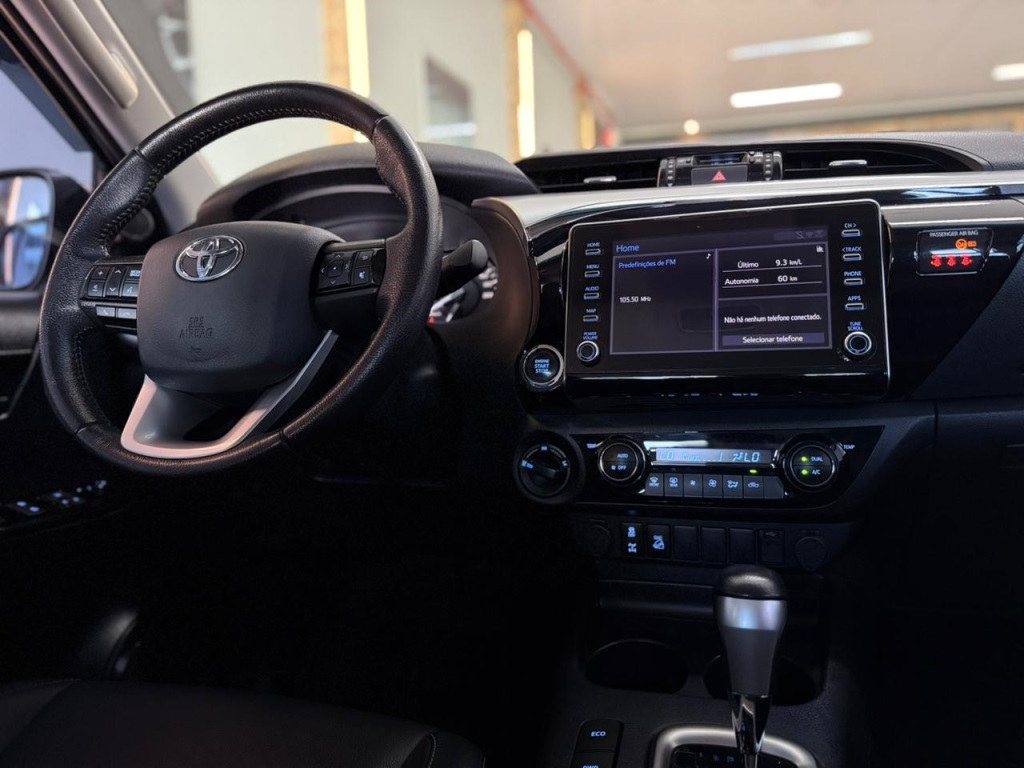 A Toyota Hilux CD SRV 4x4 Diesel 2022 é referência no segmento de picapes médias, reconhecida por sua durabilidade, força e alto valor de revenda. Equipada com motor 2.8 turbo diesel aliado à tração 4x4 e câmbio automático, oferece desempenho robusto, excelente torque e confiabilidade para qualquer tipo de terreno. A versão SRV se destaca pelo equilíbrio entre conforto e tecnologia, com interior bem acabado e recursos modernos de segurança e conectividade, posicionando a Hilux como uma das opções mais completas e respeitadas do mercado.Ano: 2022Quilometragem: 74.000 kmMotorização: 2.8 Turbo Diesel – 204 cvCâmbio: Automático 6 marchasTração: 4x4Airbag lateraisAirbag motoristaAirbag passageiroAlarmeAr condicionado digitalAr quenteBanco do motorista com ajuste de alturaBancos de couroCâmera de réCapota marítimaComputador de bordoControle de som no volanteControle de traçãoControle de velocidadeDesembaçador traseiroDireção HidráulicaEncosto de cabeça traseiroEntrada USBFarol de neblinaFreios ABSGPSInsulfilmMultimídiaPára-choques na cor do veículoPiloto automáticoPorta coposProtetor de caçambaRetrovisor fotocrômicoRetrovisores elétricosRodas de liga leveSensor de chuvaSensor de estacionamentoSensor de luminosidadeTração 4x4Travas elétricasVidros elétricosVidros elétricos traseirosVolante com regulagem de alturaAirbag de cortinaControle de estabilidadeAssistente de partida em rampaAssistente de descidaTração 4x4 com reduzidaDiferencial traseiro blocanteChave presencialPartida por botãoAr-condicionado digital dual zoneBanco traseiro bipartidoCentral multimídia com espelhamentoVolante multifuncionalPainel de instrumentos com tela digitalFaróis em LEDLanternas em LED